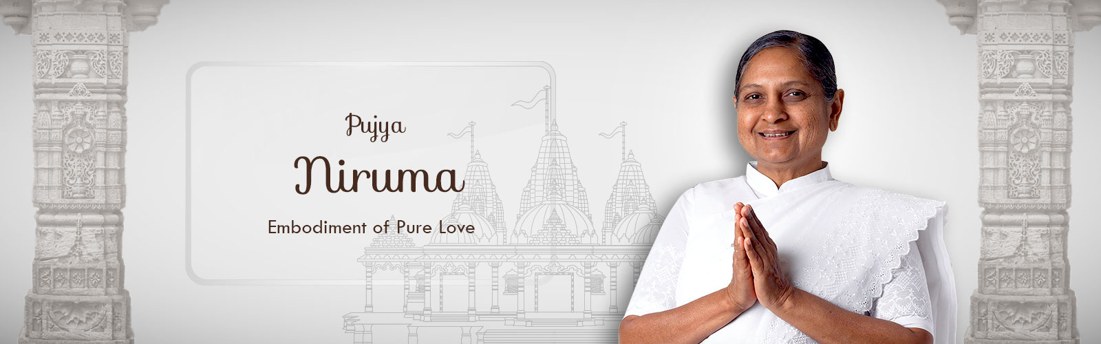 Dr. Niruben Amin, lovingly referred to as 'Pujya Niruma', was born on December 2, 1944 in Aurangabad, India to a wealthy family. Showered with love and attention, Pujya Niruma was the youngest sibling to five elder brothers. From a very young age Pujya Niruma knew she wanted to be a doctor in service to mankind. She acquired her basic schooling in Mumbai and graduated with a medical degree from Aurangabad Medical College.